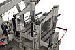 Автоматический ленточнопильный станок этой модели представляет собой модельный ряд станков с программным управлением европейского типа, предназначенных для промышленной эксплуатации. Оборудование рассчитано на пиление металлических заготовок больших диаметров, обработку профильных заготовок большой площади сечения. Конструкция станка позволяет осуществлять поворот пильной рамы вручную вправо на угол до 45°, в зависимости от технологической необходимости. Наличие системы гидравлики позволяет выполнять основные технологические циклы в автоматическом режиме, рассчитанное на серийное производство. Пильная рама плавно опускается и поднимается на высоту, предварительного настроенного концевого ограничителя. Система гидравлики обеспечивает работу гидравлических тисков для надежной фиксации заготовки. Есть отдельная регулировка усилия зажима тисков. Максимально допустимый диаметр круглых заготовок при обработке под прямым углом составляет 460 мм. Положение консоли под углом 45° позволяет вести обработку заготовок диаметром до 378 мм.