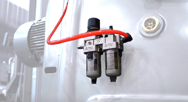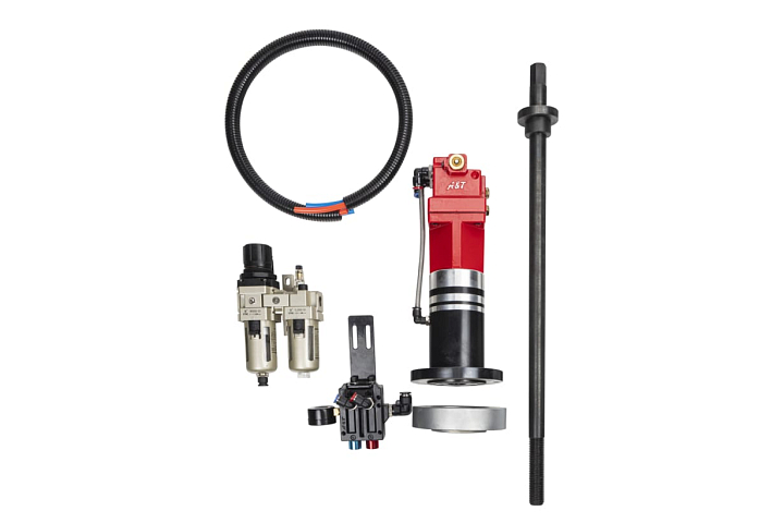 Пневматический зажимная тяга, представляет собой универсальный вид оснастки, применяемой для работы на универсально фрезерных станках, выпускаемым компанией JET. Приспособление является системой крепления инструментальных оправок в шпиндель и позволяет фиксировать их с помощью пневматики и сжатого воздуха. Устанавливается сверху фрезерной головки с креплением на шомпол. Подпружиненная накидная гайка, под действием давления воздуха, вращает зажимную тягу (шомпол) и втягивает инструментальную оправку в посадочный конус шпинделя. Предварительно необходимо сориентировать пазы оправки к упорам на шпинделе, предотвращающими проворот оснастки.