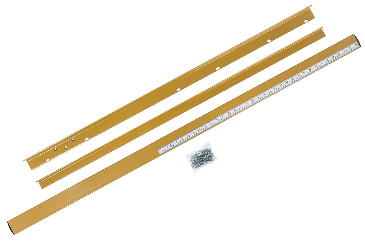 Можно приобрести данную принадлежность и заменить полностью конструкцию направляющих на станке. Линейка уже наклеена на основную трубу. Комплект включает все необходимое для установки направляющей на станок и крепления внутри фронтальной и тыльной консолей расширения пильного стола(винты/шайбы/гайки).