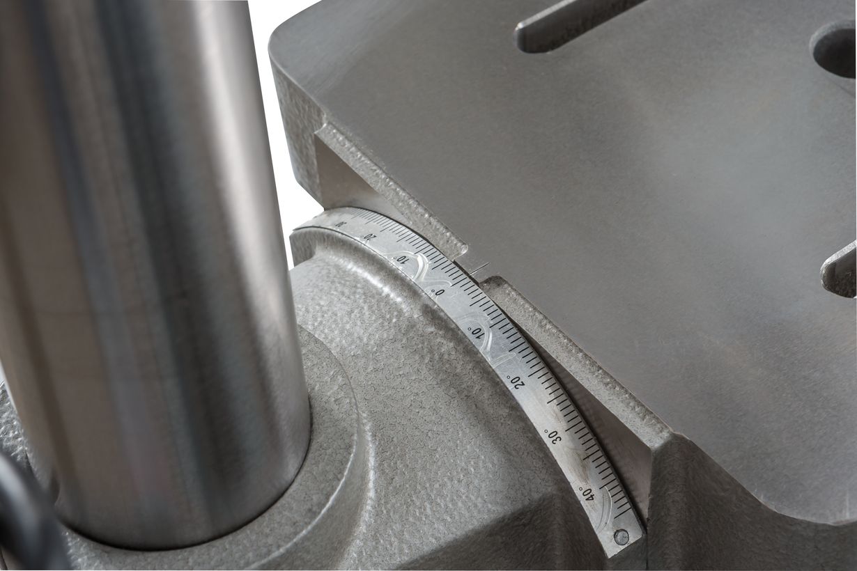 Станок сверлильный настольный IDTP-16 возглавил новую линейку станков JET с возможностью нарезать резьбу. Данный станок производится в Китае, что позволяет снизить стоимость изготовления, а это непосредственно влияет на цену станка в России. Станок оснащен мощным двигателем 500Вт и способен в режиме долгих нагрузок нарезать резьбу до М12. На станке установлен асинхронный двигатель, на который установлен шкив с 5-я ручьями, перекидывая ремень по ручьям шкива, вы меняете скорость от 200 до 2350 оборотов в минуту. Данное решение в тандеме с легкой натяжкой двигателя и надежной фиксацией, позволяет сохранить и передать хороший момент на шпинделе. Основание станка отлито из серого чугуна, станок устанавливается на верстак или стол, подстолье и фиксируется болтами. Надежная фиксация позволяет уменьшить вибрации. В основание вставляется толстостенная труба, на которую непосредственно крепится голова сверлильного станка. В управление станок достаточно прост.