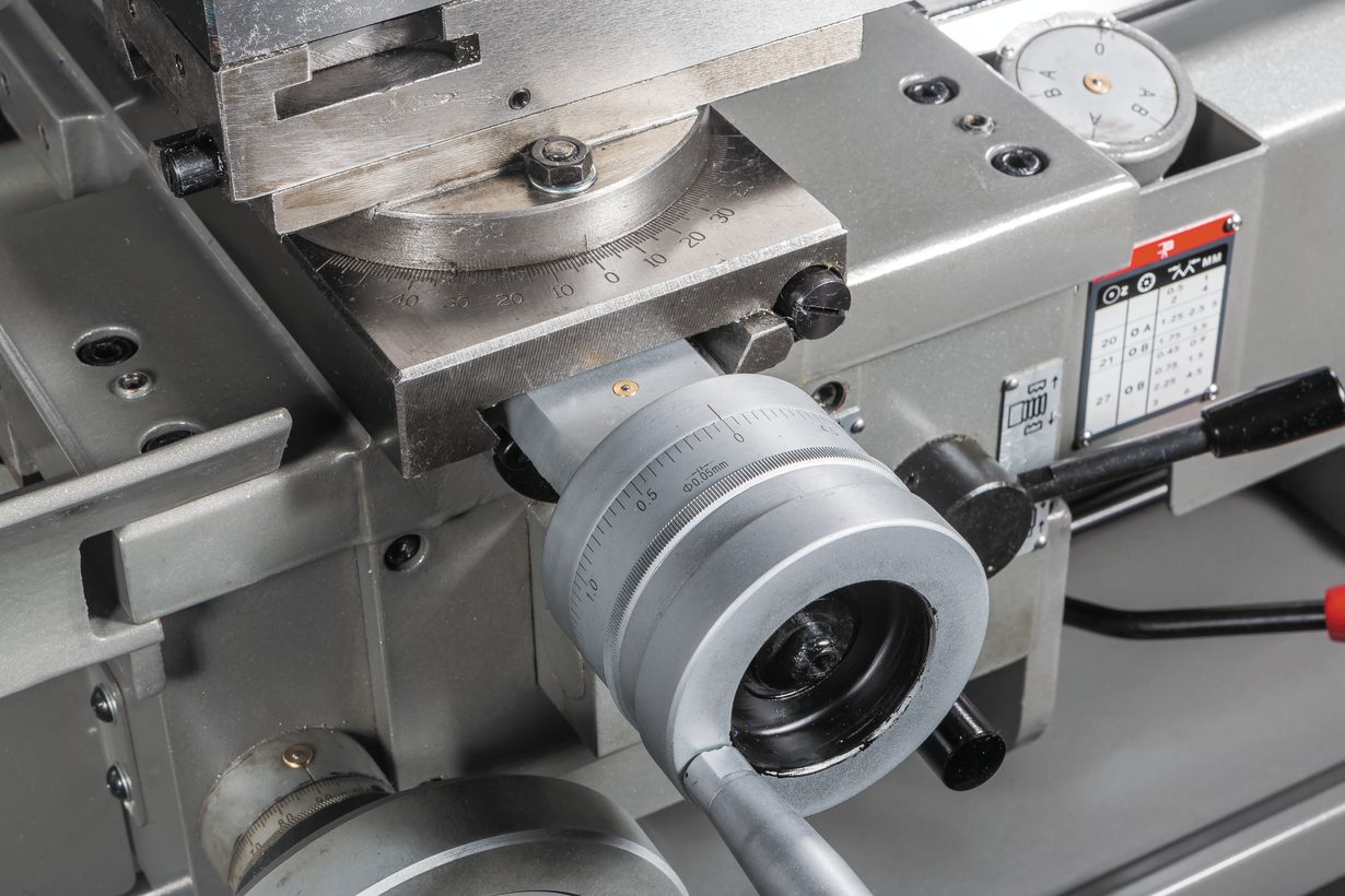 Токарно-винторезный станок GHB-1330A DRO позиционируется компанией JET как профессиональное оборудование для мастерских, автосервисов, небольших предприятий и домашних специалистов по обработке металла. По своей сути, это GHB-1330 A, дооборудованный устройством цифровой индикации (УЦИ). При использовании такого устройства существенно повышается точность обработки и, как следствие, снижается процент возможного брака. Данное оборудование выпускается по промышленному стандарту DIN 8606 (соответствие всех параметров и допусков для станков средней точности). На станке можно обрабатывать заготовки диаметром 330 мм над станиной или 197 мм над суппортом. Скорость оборотов шпинделя от 70 до 2500 об/мин, расстояние между центрами составляет 760 мм.