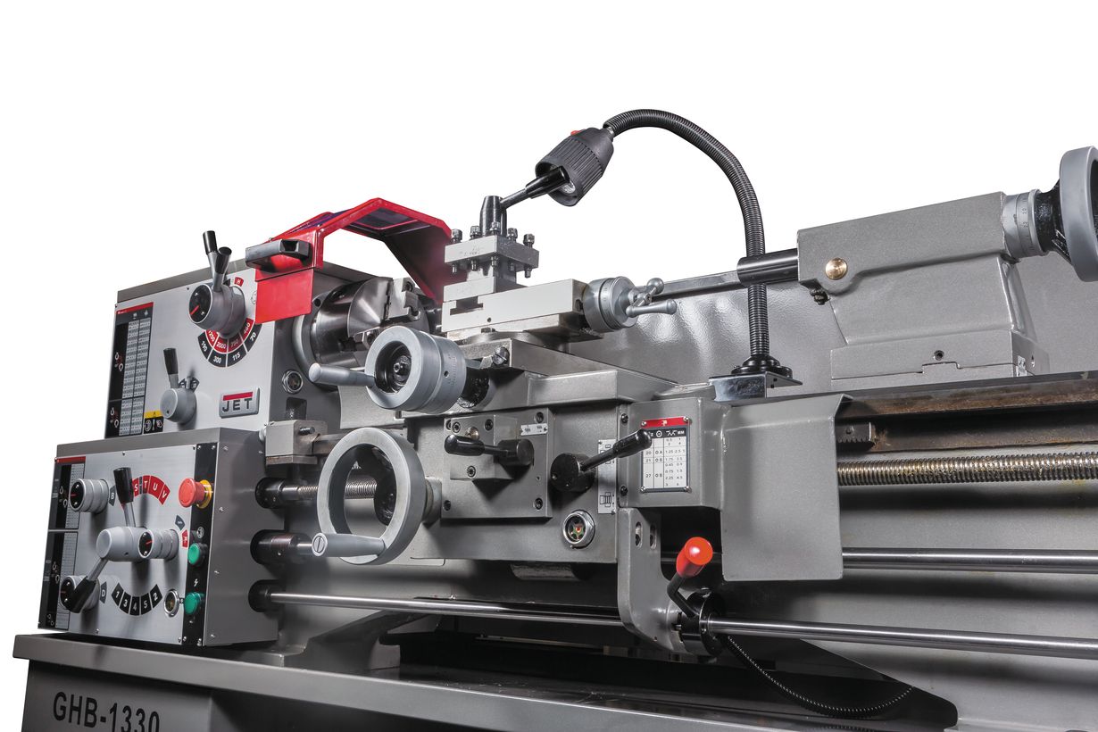 JET GHB-1330A - универсальный токарно-винторезный станок, предназначенный для работы с черными металлами и цветными сплавами, а также для нарезания метрической и дюймовой резьб. Есть возможность укомплектовать системой подачи СОЖ и другими полезными в работе опциями.